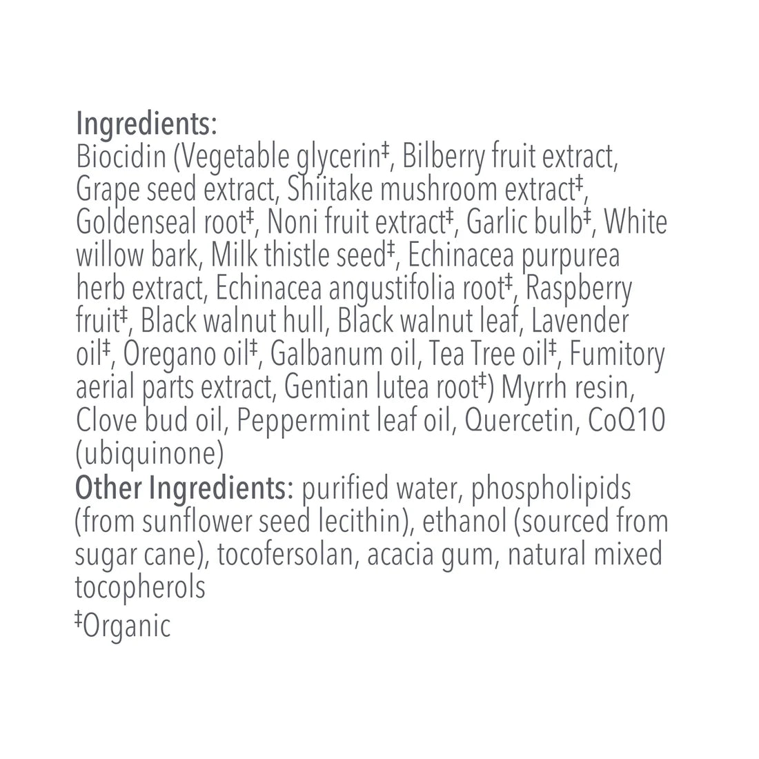- Contains Biocidin® Botanical Blend, made with organic ingredients