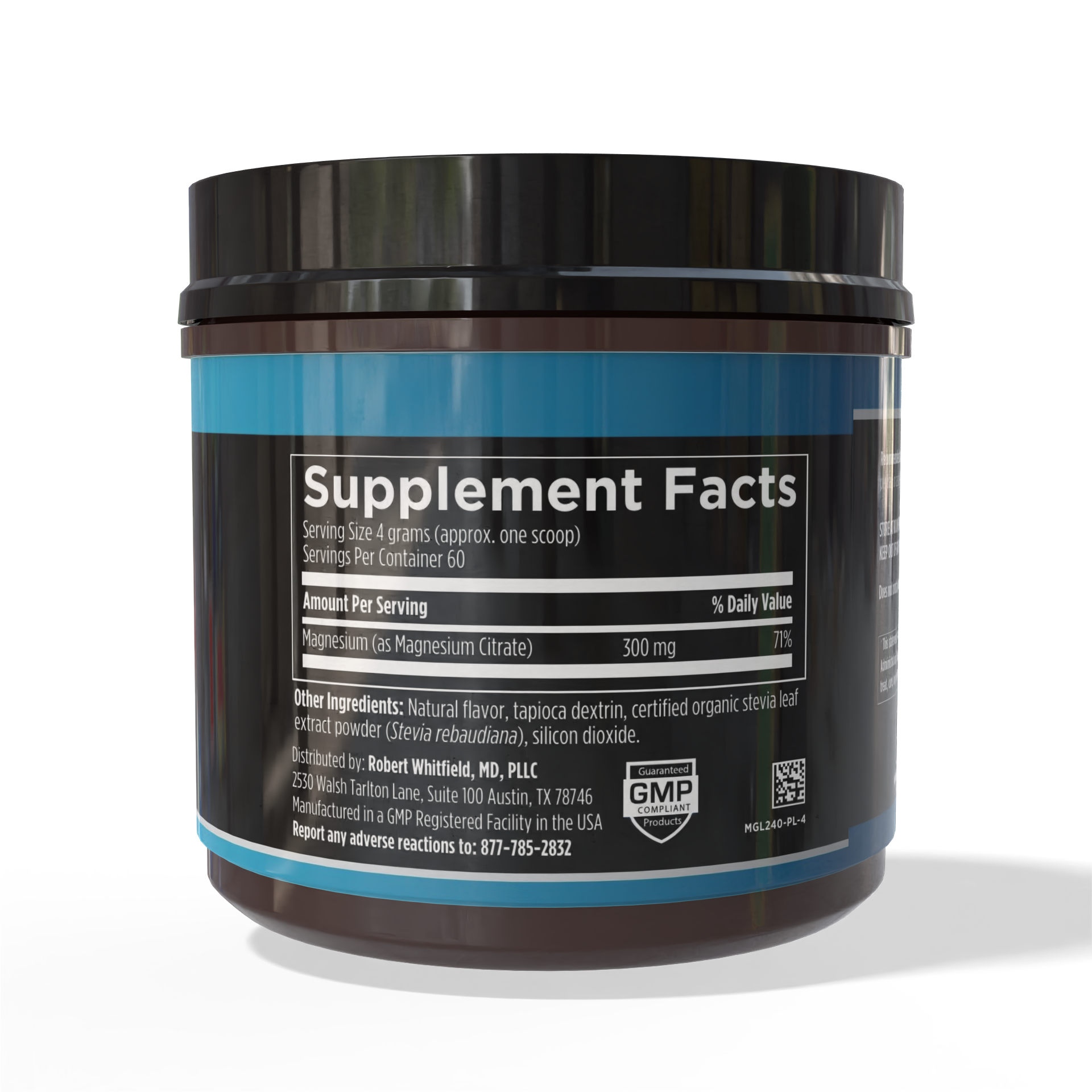 MagCitrate Powder provides 300 mg of magnesium in each 1-teaspoon serving, as a convenient delivery system in a great-tasting, lemon-flavored powder. It mixes well in water and is very easy to titrate when higher doses are needed. MagCitrate Powder helps promote bowel relaxation when fiber alone is not enough. This product also supports the ability to fall asleep, and it can be taken along with our Calming Sleep Support for a restful night’s sleep.*
