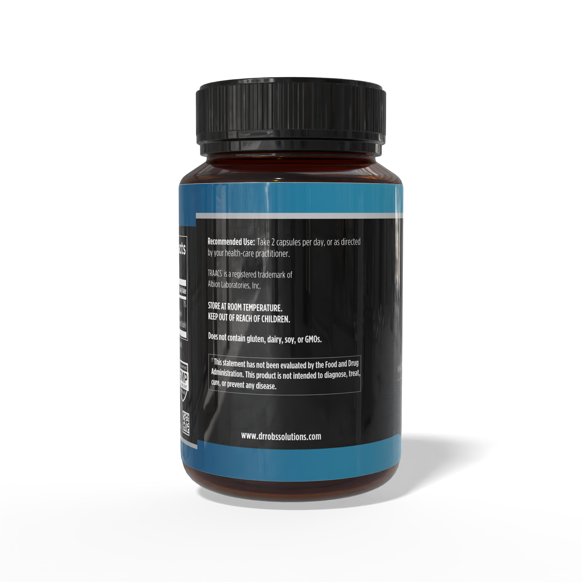 This buffered form of magnesium is one of the best absorbed, where a magnesium ion is bound between two glycine amino acids, forming a very stable chelate, which eliminates the traditional loose stools or upset stomach that may occur with magnesium supplementation. Mineral chelates can bypass normal modes of absorption in the intestine and therefore, avoid the competition that occurs between minerals for absorption. In this way, larger amounts of magnesium pass through the intestine and are available to the body. The unique process of “sandwiching” magnesium between the glycine molecules also protects it from being bound by dietary compounds, further enhancing its availability.