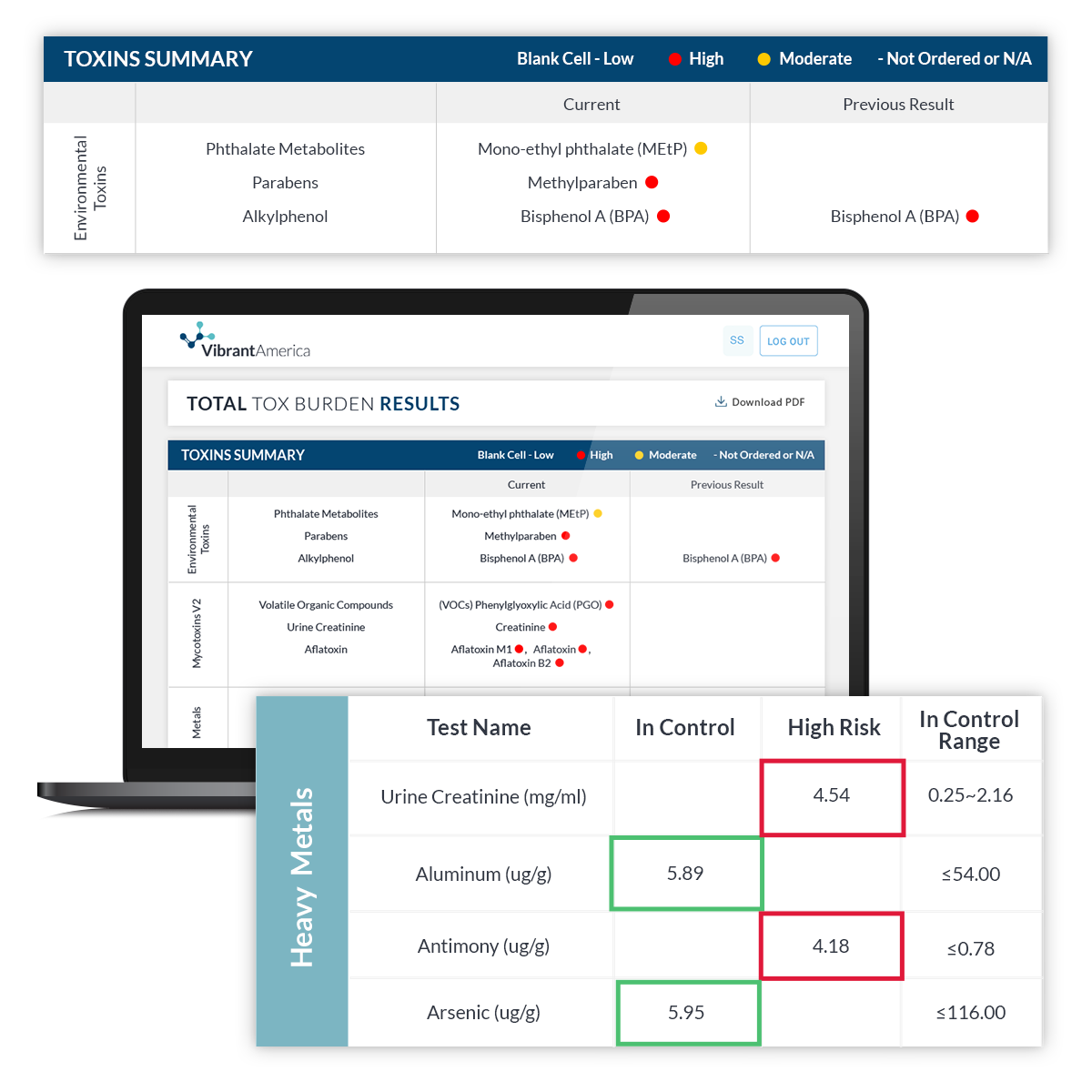 This Mold/Toxin test panel combines the environmental toxins, mycotoxins, and heavy metals tests to measure a variety of toxins. This TotalTox package empowers you to understand your level of toxin burden and take an informed action to optimize your detoxification.